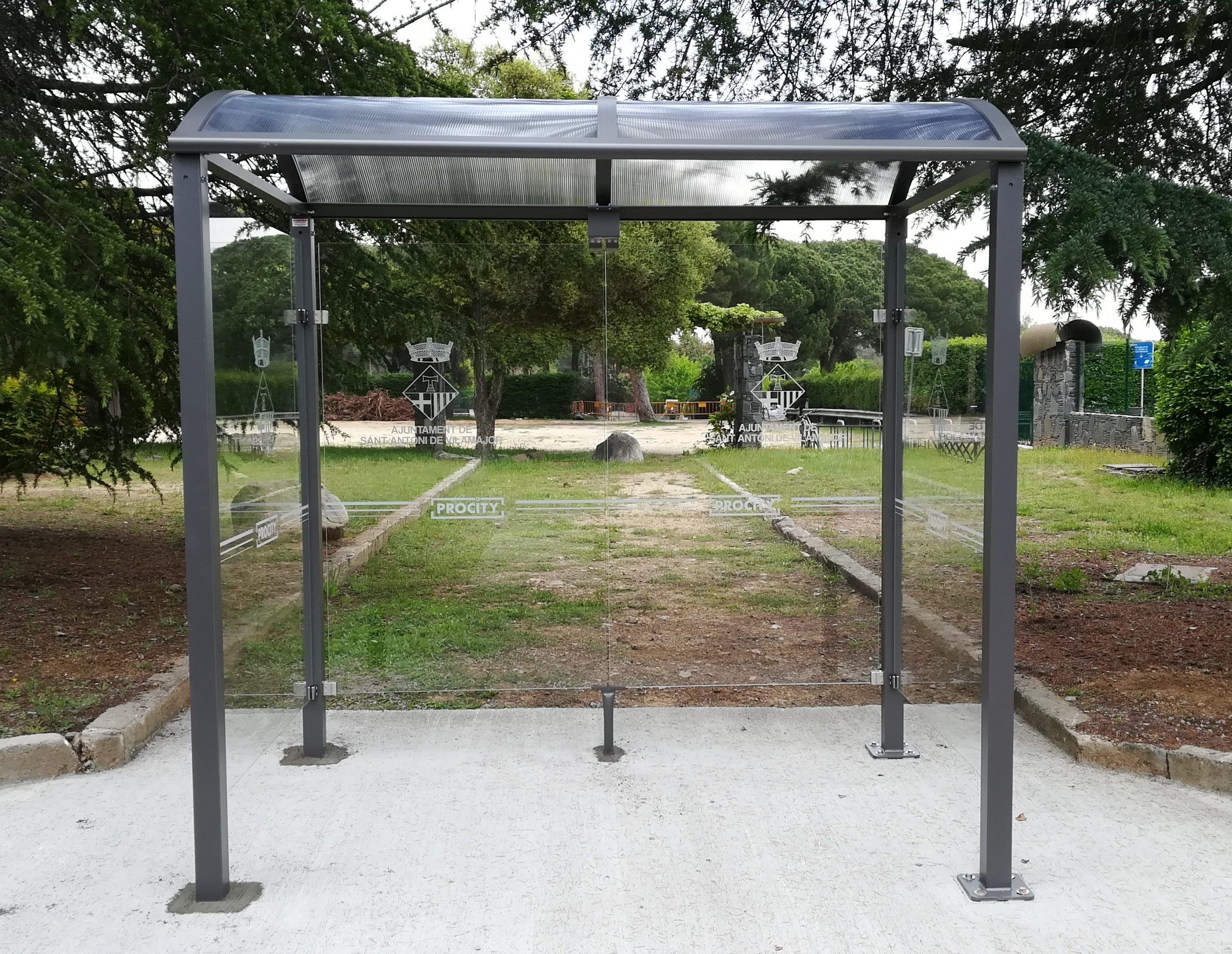 Descripción: Marquesinas para autobús con bóveda y cierres laterales acabada pintura sobre galvanizadas